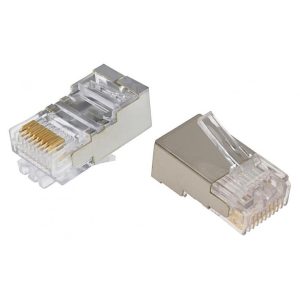 Conector macho RJ45 categoría 5e Apantallado Su terminación por desplazamiento de aislante acepta calibres de cable desde 24 a 26 AWG. Diámetro máximo cable 5.1 mm
