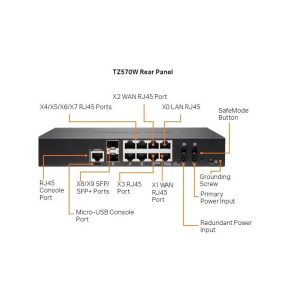 5. Seguridad inalámbrica: El TZ 570 es compatible con los estándares Wi-Fi 802.11ac y 802.11n y ofrece funciones de seguridad avanzadas para proteger la red inalámbrica y sus dispositivos conectados.